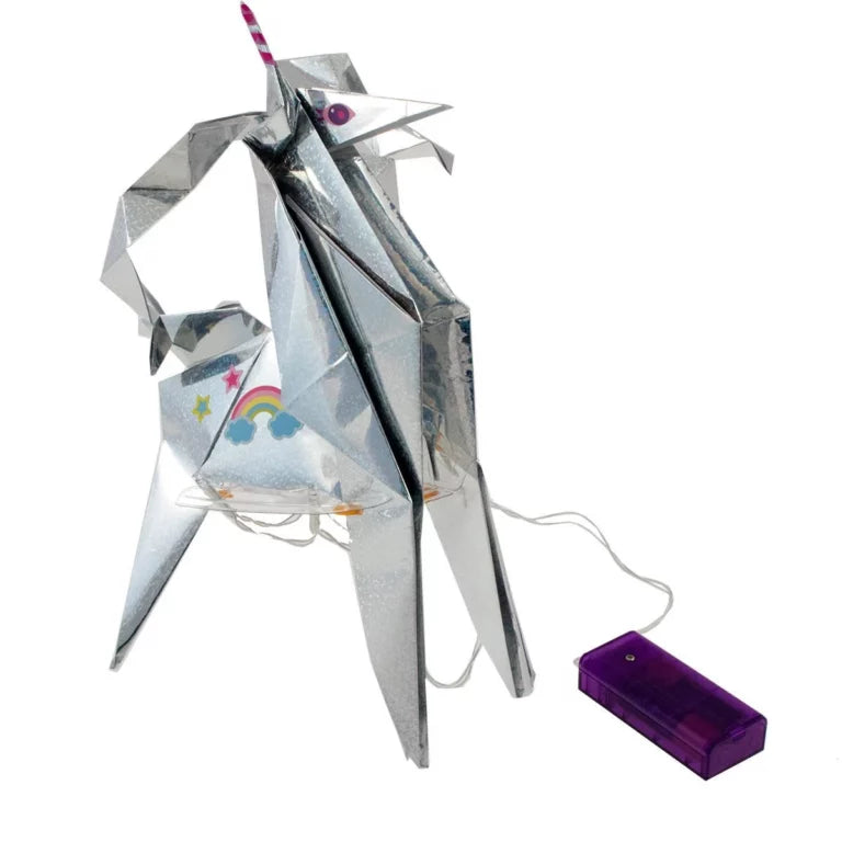 Byggsats, skapa en gigantisk origami-enhörning med belysning!