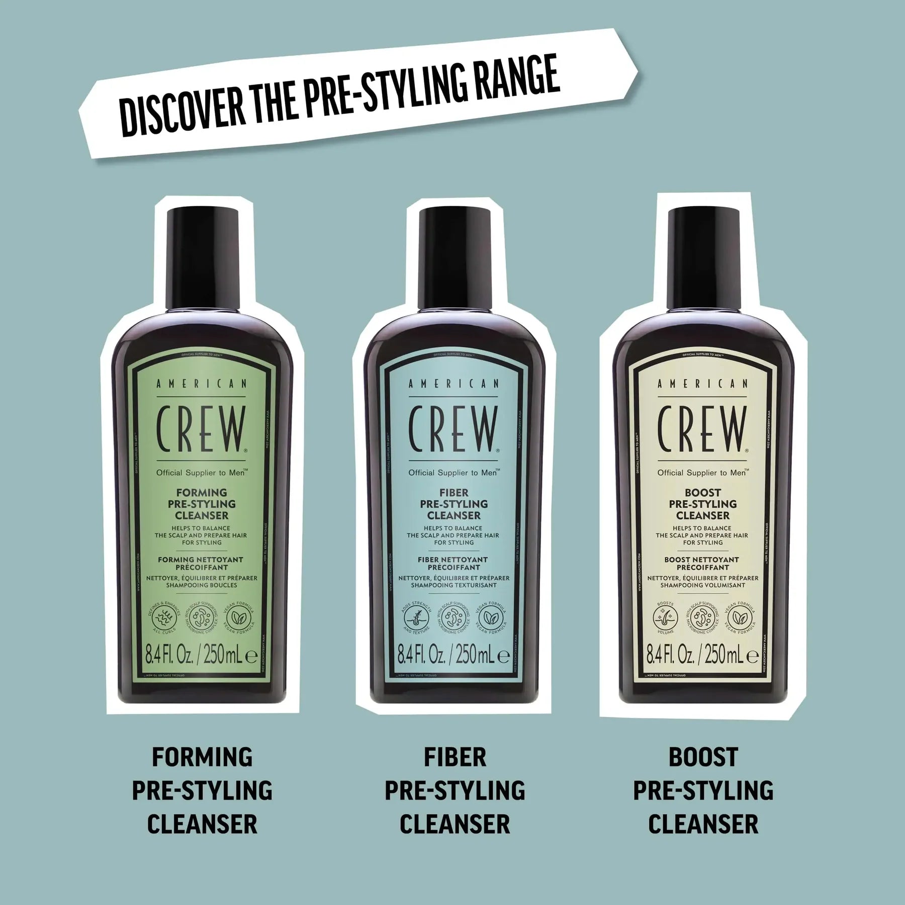 Elegant design med American Crew-logo